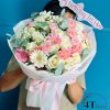 Bó hoa hồng kem mix hướng dương – BH166 là sự kết hợp hài hòa giữa hoa hồng kem dâu, hoa baby trắng, hoa baby hồng, hoa hướng dương, cỏ đồng tiền, và lá bạc. Hoa hồng kem dâu với sắc kem nhẹ nhàng và hoa baby trắng, baby hồng tạo điểm nhấn tinh tế, trong khi hoa hướng dương với màu vàng rực rỡ mang đến sự tươi sáng và vui tươi. Cỏ đồng tiền và lá bạc thêm phần duyên dáng, làm nổi bật sự hòa quyện màu sắc của bó hoa.
