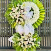 Mỗi loài hoa và lá đều góp phần vào việc tạo ra một kệ hoa thể hiện sự kính trọng và tôn vinh người đã khuất, đồng thời làm nổi bật sự trang nhã và thanh thoát của không gian tang lễ. Kệ hoa này không chỉ là biểu tượng của lòng thành kính mà còn giúp tạo ra một bầu không khí trang trọng và ấm áp.